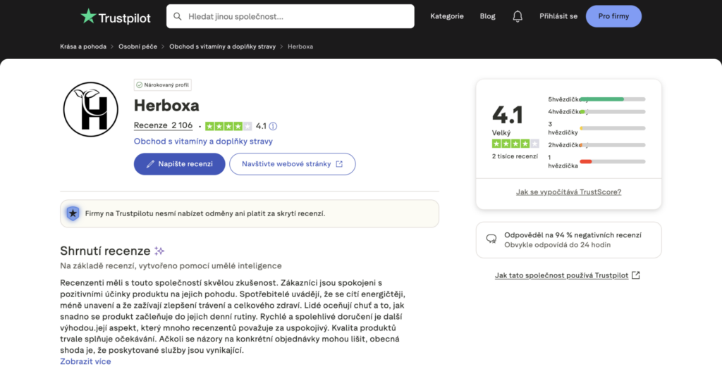 Herboxa recenze na českém trhu jsou převážně pozitivní a značka si buduje pověst kvalitního výrobce přírodních doplňků stravy.